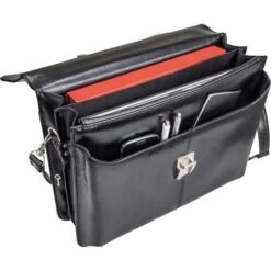 Alassio Aktentasche 47011, Faenza, Schwarz, Mit Schnappverschluss, Laptopfach, Echt Leder